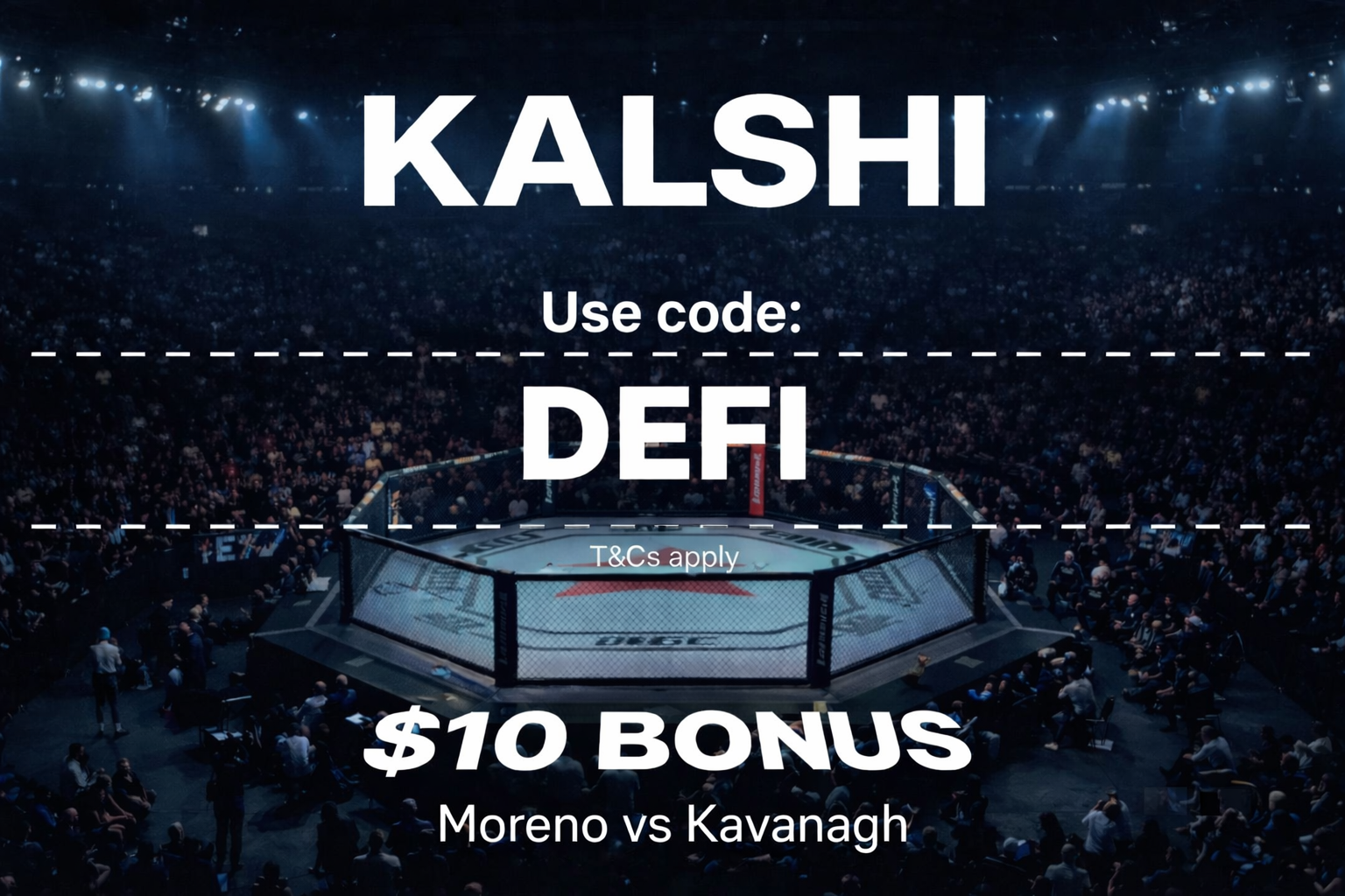 Kalshi is offering a $10 promo for UFC Vegas 115: Moicano vs. Duncan. New users qualify for a $10 bonus using Kalshi promo code DEFI for Moicano vs. Duncan. Prelims start at 5pm ET, main card at 8pm ET on Paramount+.